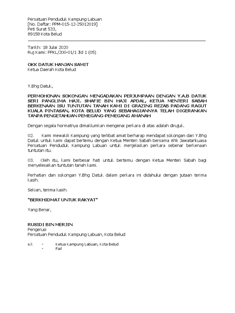 Yab dato menteri besar selangor. Contoh Surat Rasmi Tukar Nama 13 Gontoh. Contoh Surat Rasmi Sokongan Ketua Kampung Surat Rasmi F For more information and source see on this link.